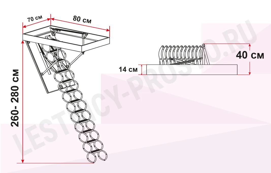 Чердачная термоизоляционная ножничная лестница FAKRO LST 70×80 см, h-280 см