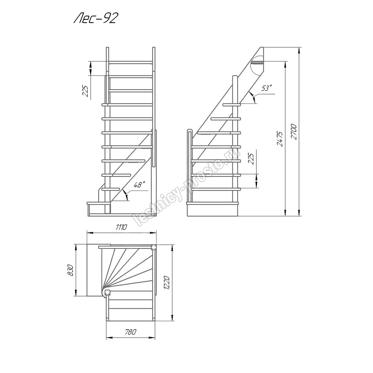 Деревянная межэтажная лестница ЛЕС-92 у, Сосна