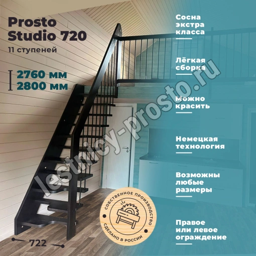 Консольная деревянная лестница Prosto Studio 720 гусиный шаг, h276-280 см (11 ступеней) из сосны