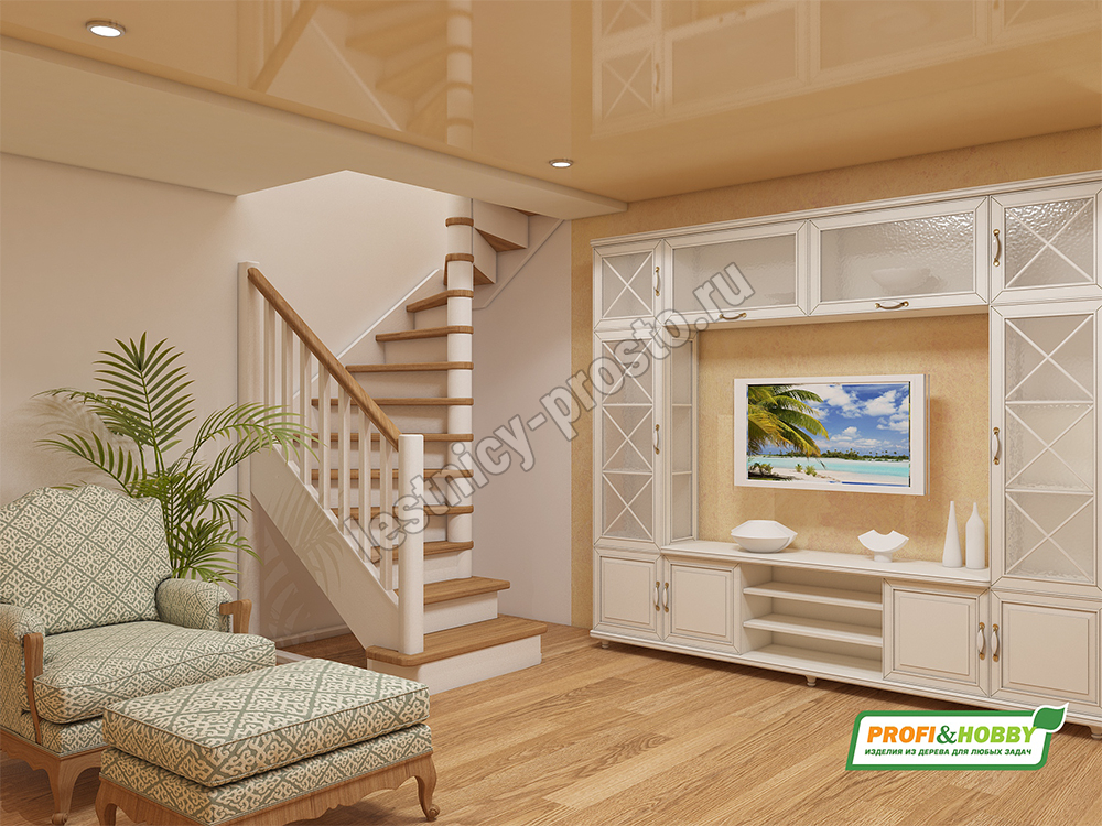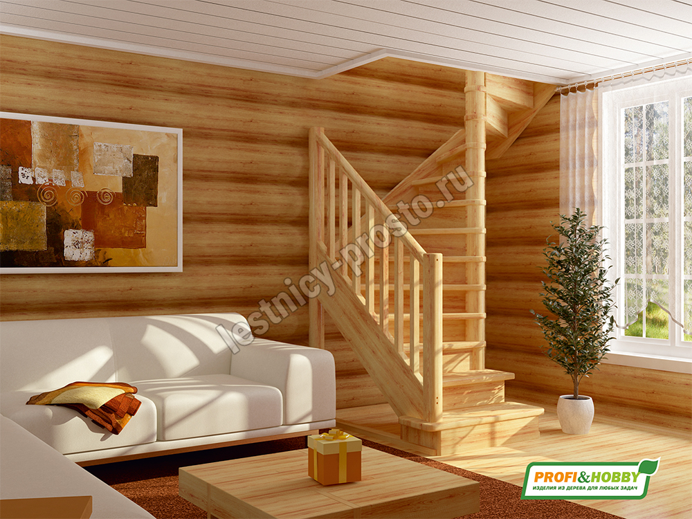 Ступени и поручень лестницы изготовлены из бука, остальные элементы из сосны.