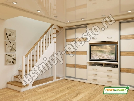 Ступени и поручень лестницы изготовлены из дуба, остальные элементы из сосны.