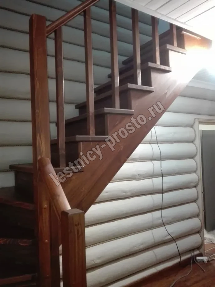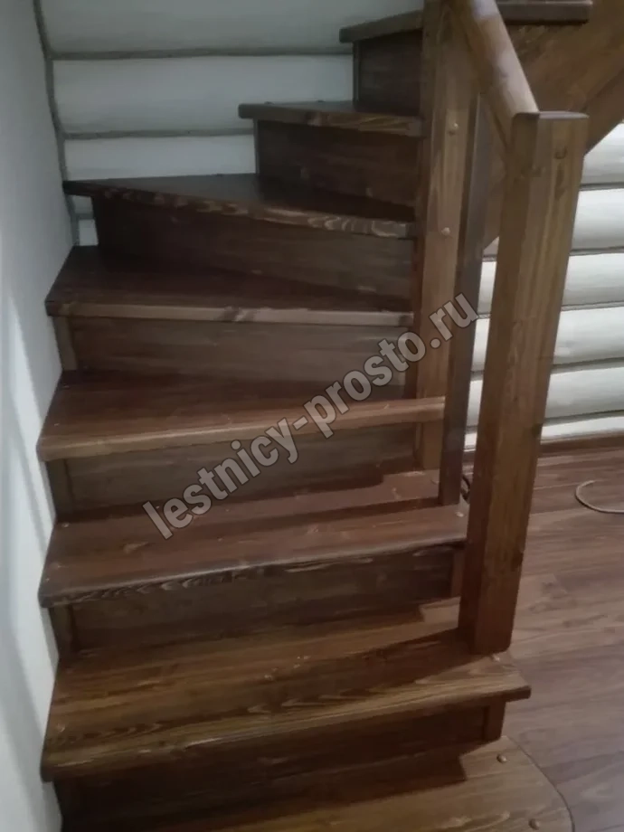 Обратите внимание! Данный вариант лестницы изготовлен из сосны эконом-класса, имеющей заметные серые/синие вкрапления цвета - это не отражается на прочности лестницы, но может быть заметно при покраске в светлые тона.