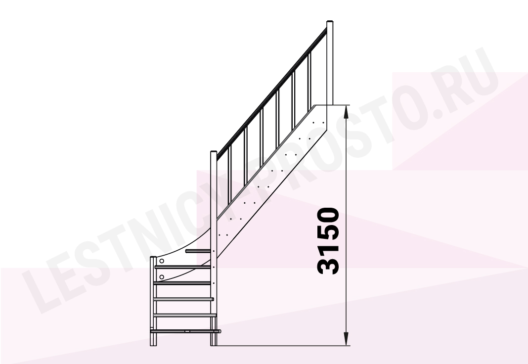 Обратите внимание! Данный вариант лестницы изготовлен из сосны эконом-класса, которая имеет заметные области синевы - это никак не отражается на прочности и надёжности лестницы, но может быть заметно при прозрачных покрытиях и покраске лестницы в светлые тона.