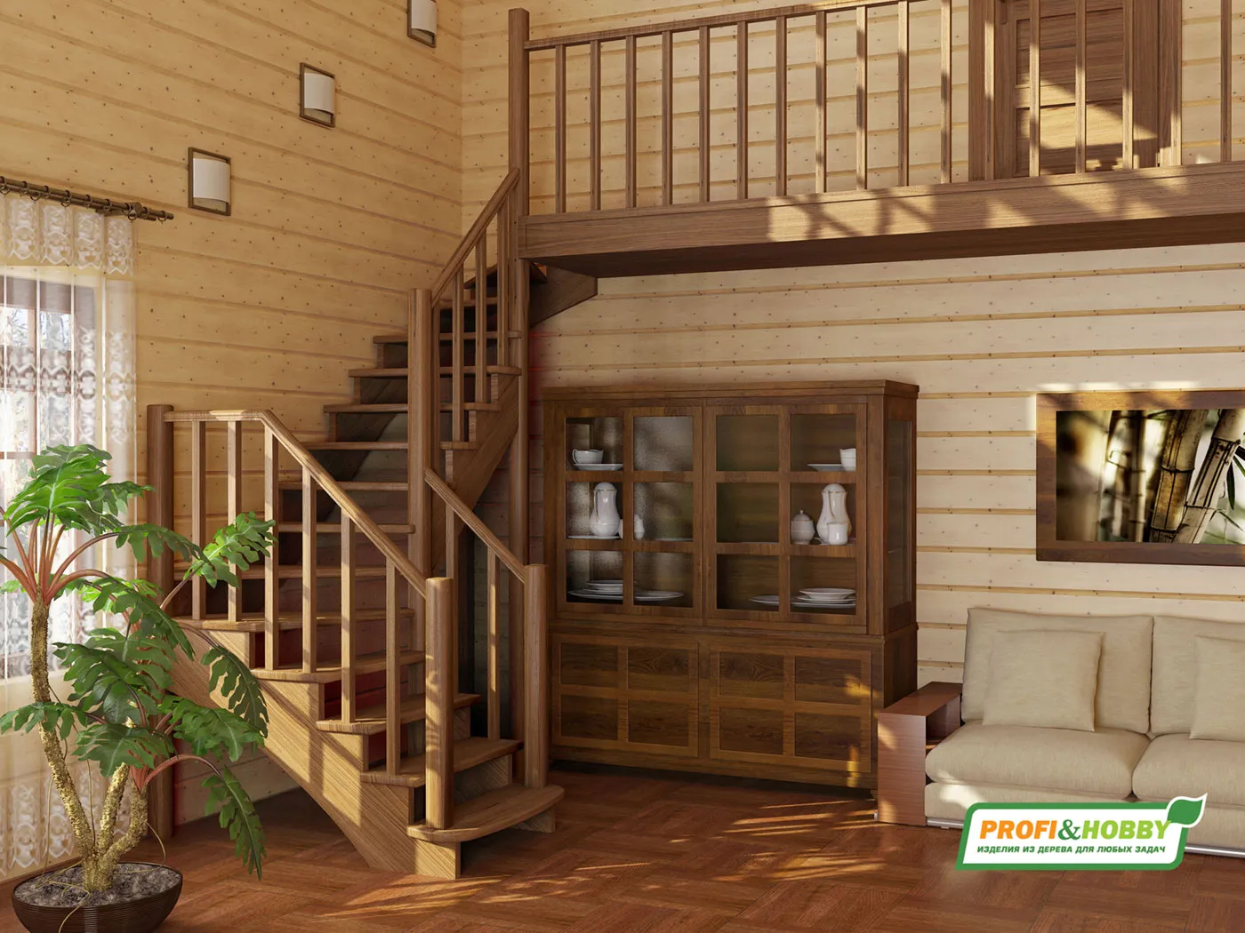 Базовый комплект включает в себя деревянные элементы лестницы с подступенками и ограждения без какого-либо покрытия.