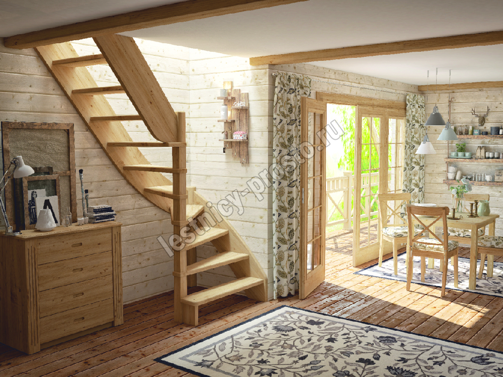 Базовый комплект включает в себя деревянные элементы лестницы без какого-либо покрытия.