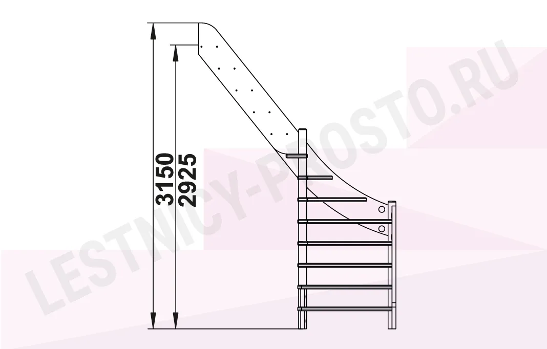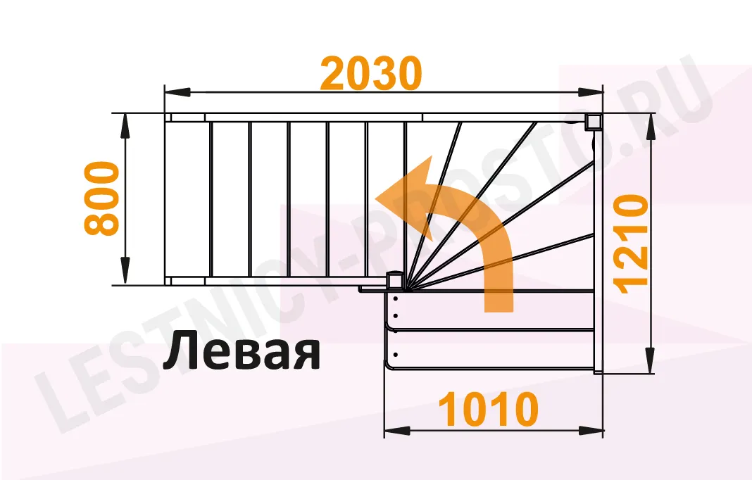 Схема лестницы ЛС-92М/5 с поворотом налево