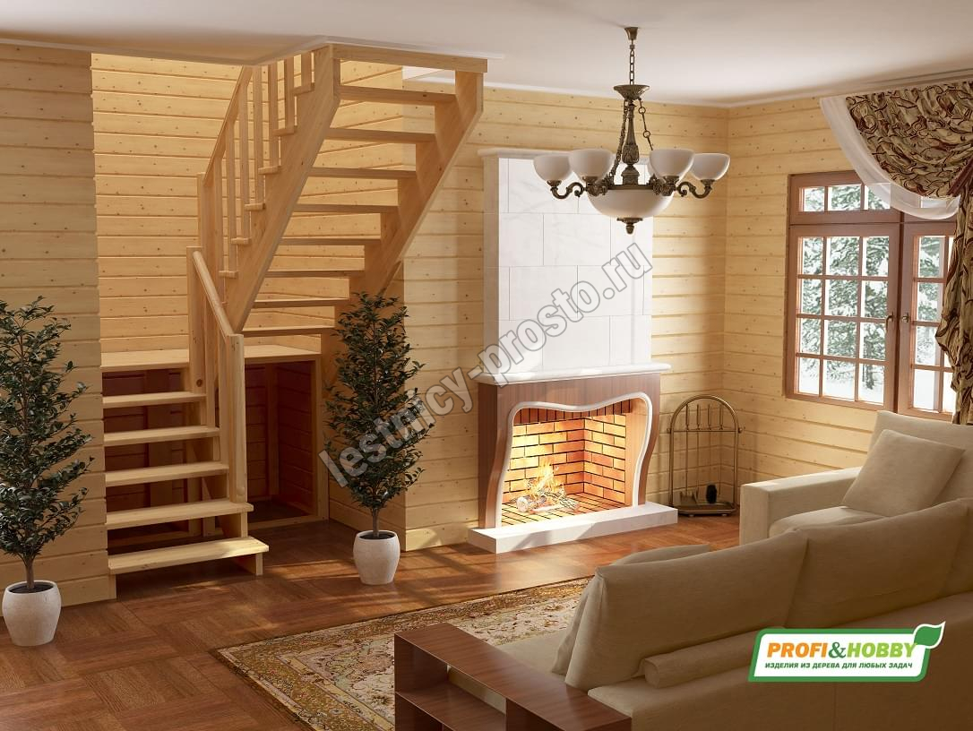 Ступени и поручень лестницы изготовлены из ясеня, остальные элементы из сосны.