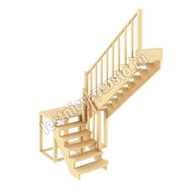 Материал: ясень (ступени и поручень), сосна (косоуры, столбы, балясины)