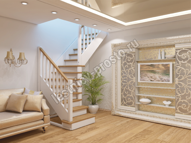 Базовый комплект включает в себя деревянные элементы лестницы с подступёнками и ограждение без какого-либо покрытия.
