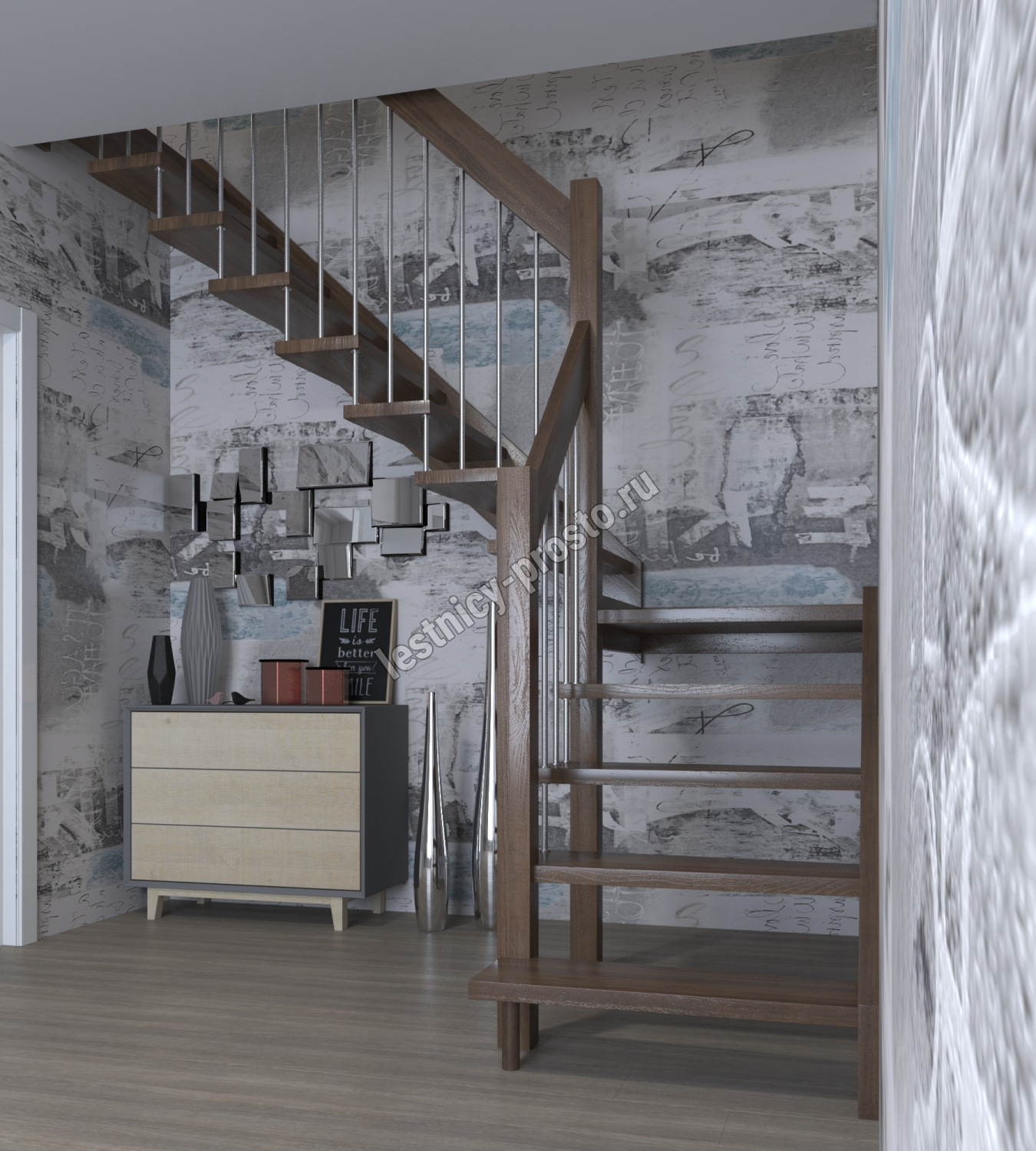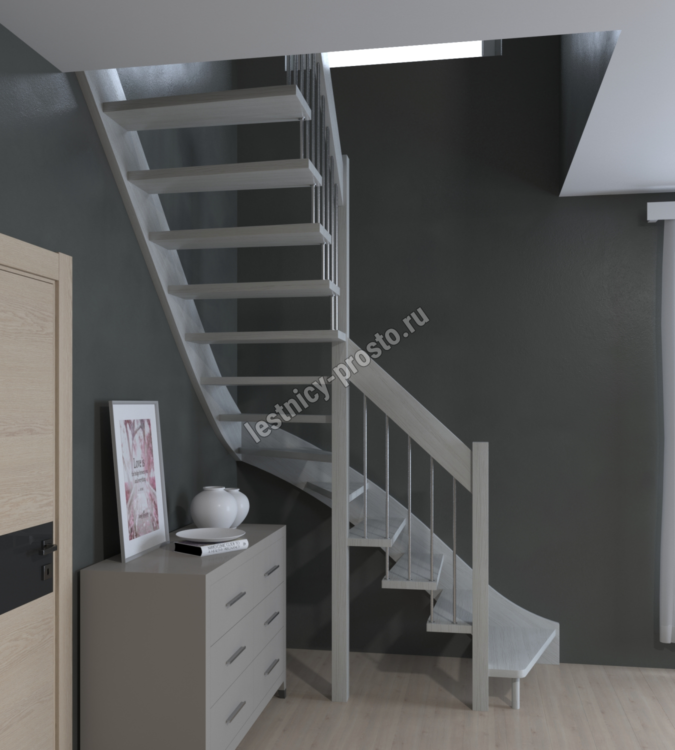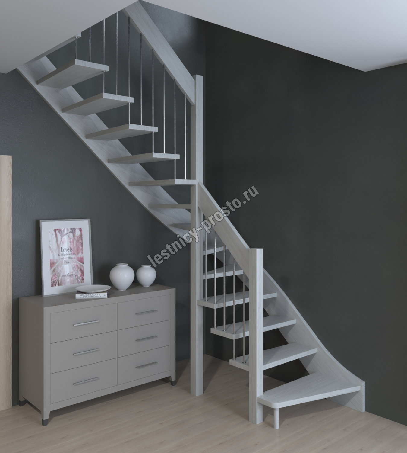 Лестница Prosto Console г-образная забежная дуб, h247.5 см (10 ступеней)
