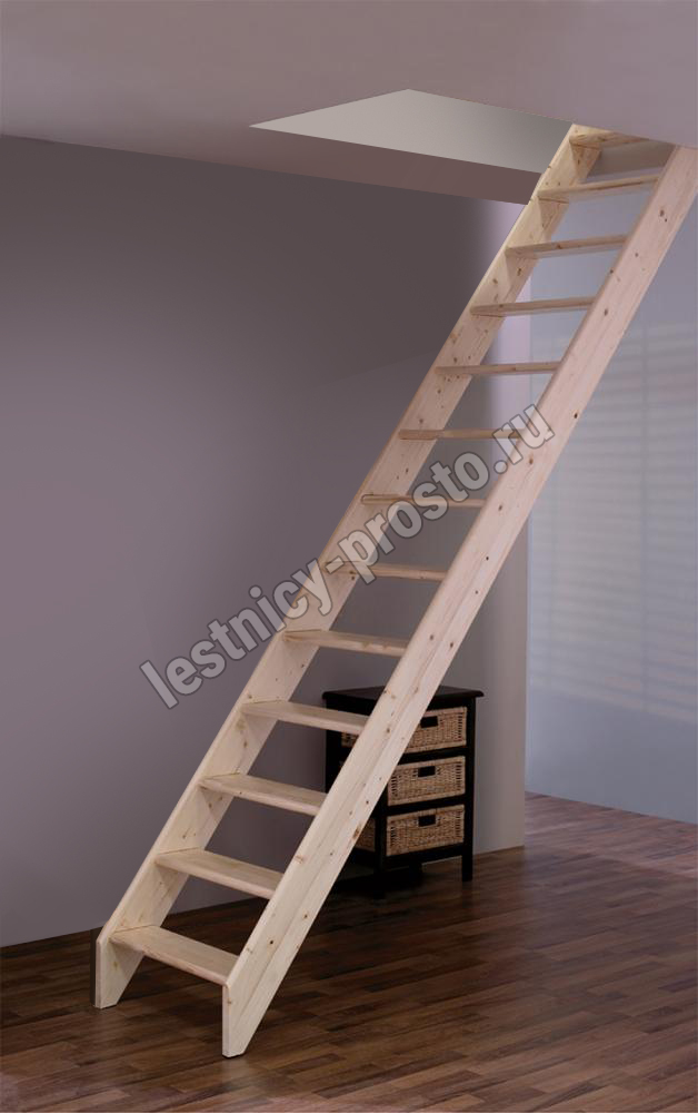 Базовая комплектация включает в себя деревянные элементы лестницы без какого-либо покрытия