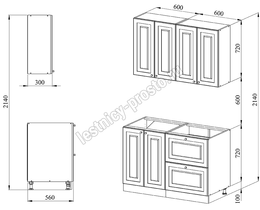 • Тумба под мойку 600 х 560 х 720 мм - 1 шт