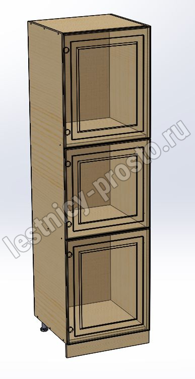 Пенал 2040 х 600 х 560 филенка, 3 двери (без полок), сосна, бесцветный акриловый лак