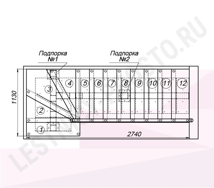 1. Верхняя ступень устанавливается вровень с уровнем верхнего этажа