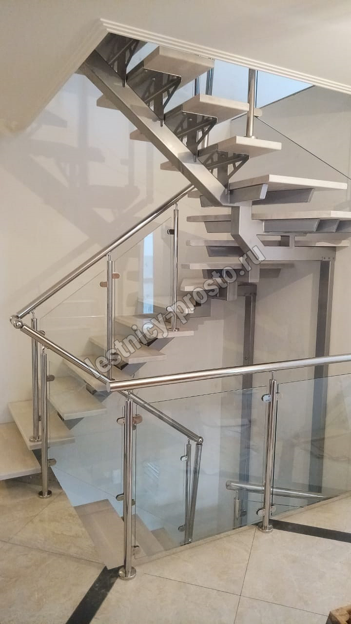 Основой лестницы служит цельносварной центральный косоур, который обеспечивает надёжную прочность конструкции и "парящий" дизайн, лестница с таким каркасом в интерьере смотрится легко и воздушно.
