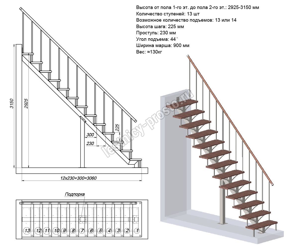 Стоимость указана для металлического каркаса и ступеней. Ограждение можно выбрать отдельно