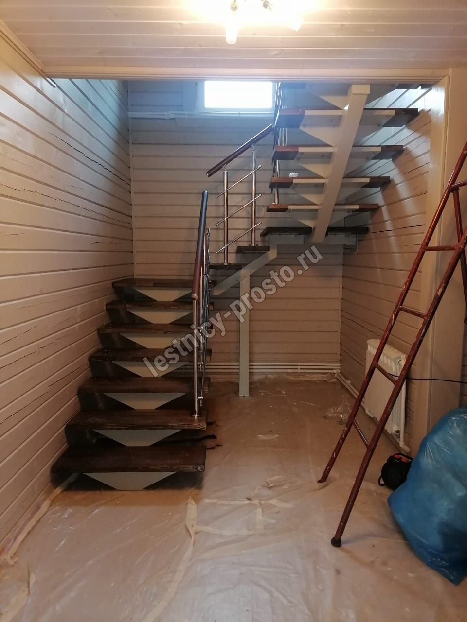 Конструкция представляет собой стальной монокосоур, на который крепятся ступени из выбранной породы дерева.