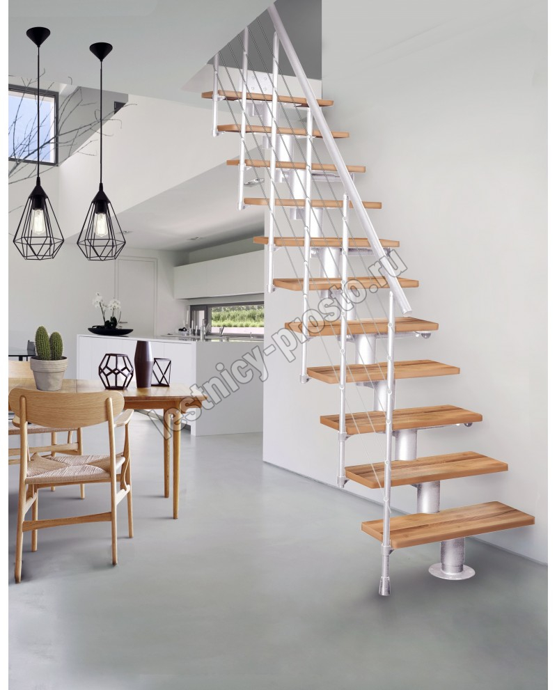 Модульная лестница Dixi серебро, светлая ольха