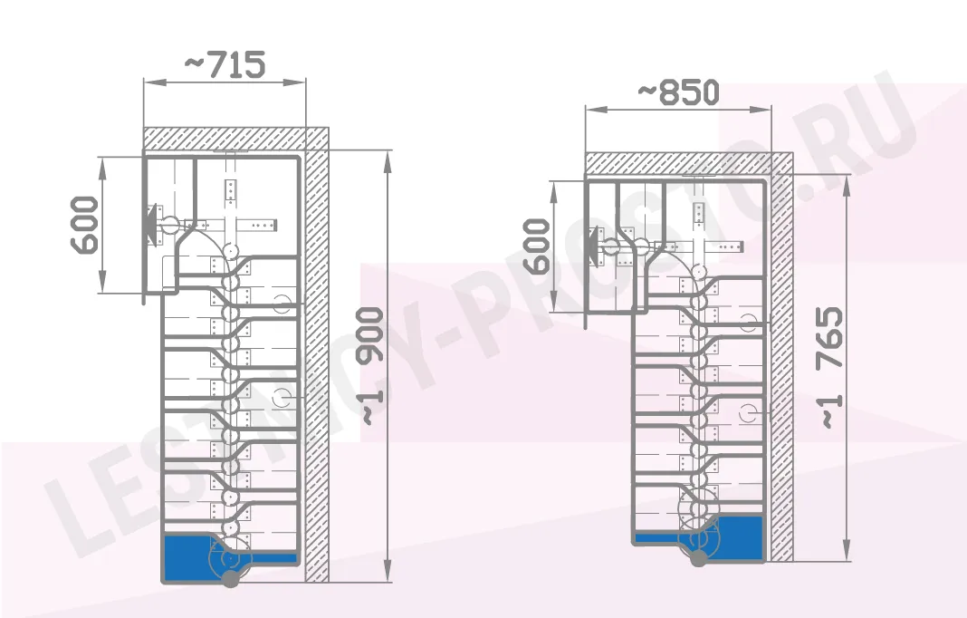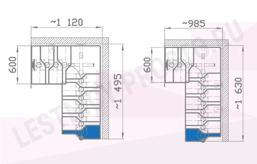 Форма лестницы Г-образная