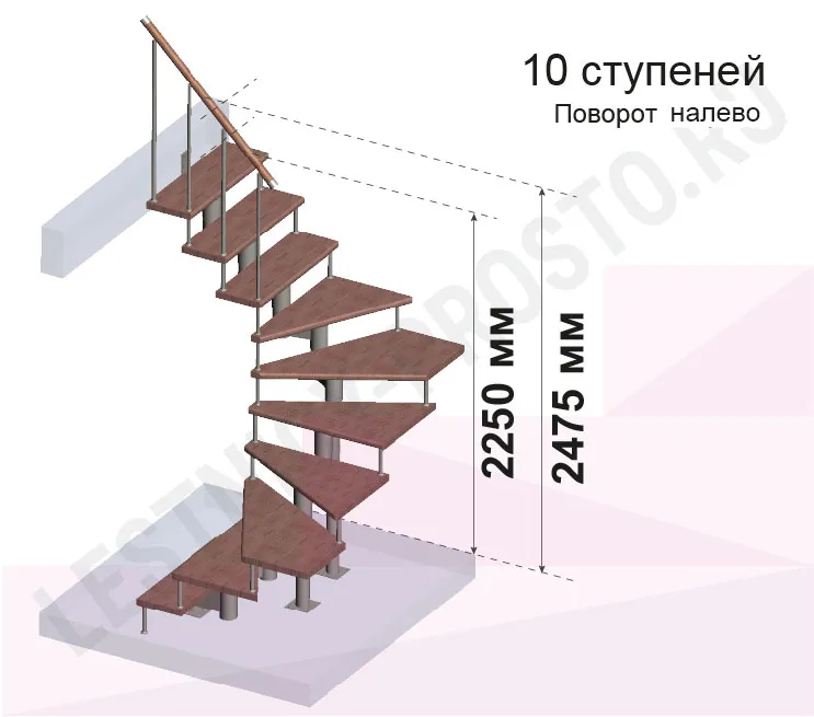 Высота лестницы 2250 - 2475 (10 ступеней) мм