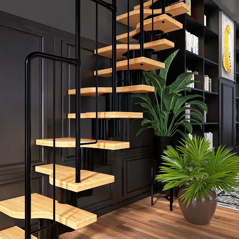 Лестница Prosto Urban Black гусиный шаг 600 мм, h216-312 см (12 ступеней), дуб