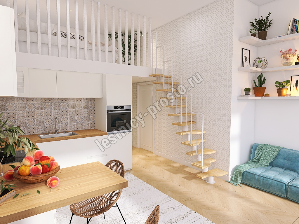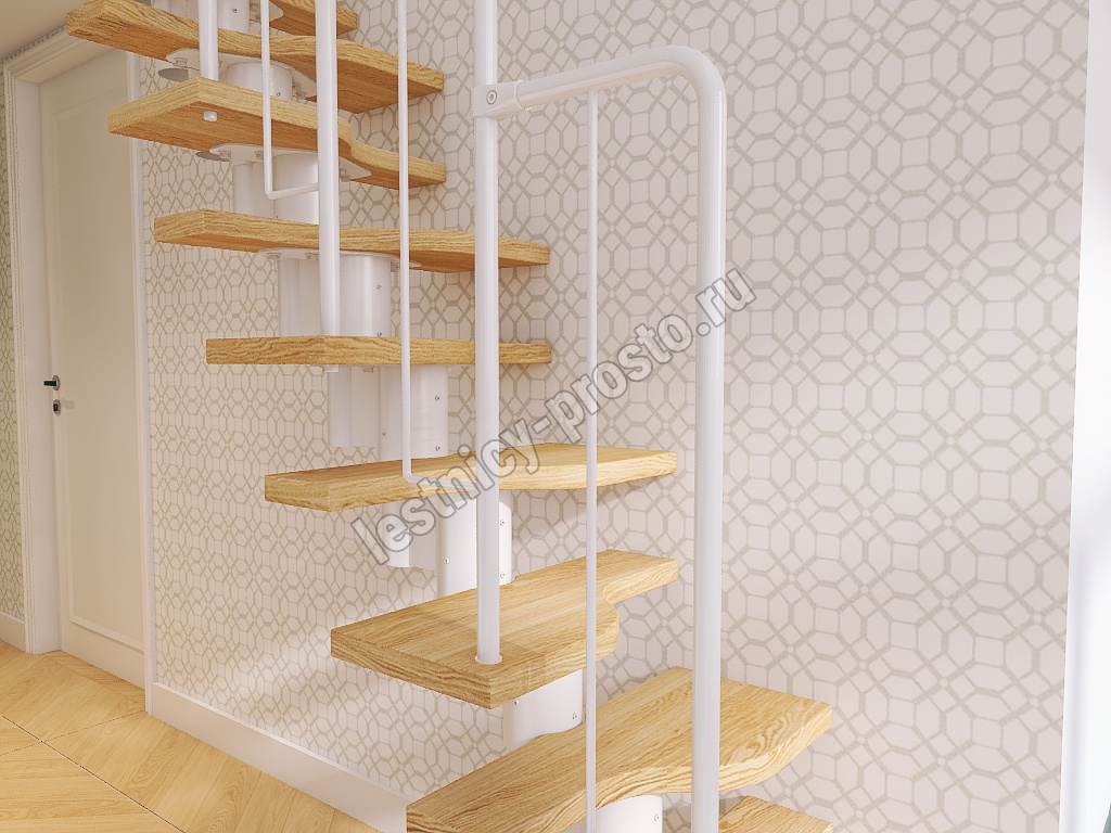 Лестница Prosto Urban White гусиный шаг 600 мм, h180-264 см (10 ступеней), бук