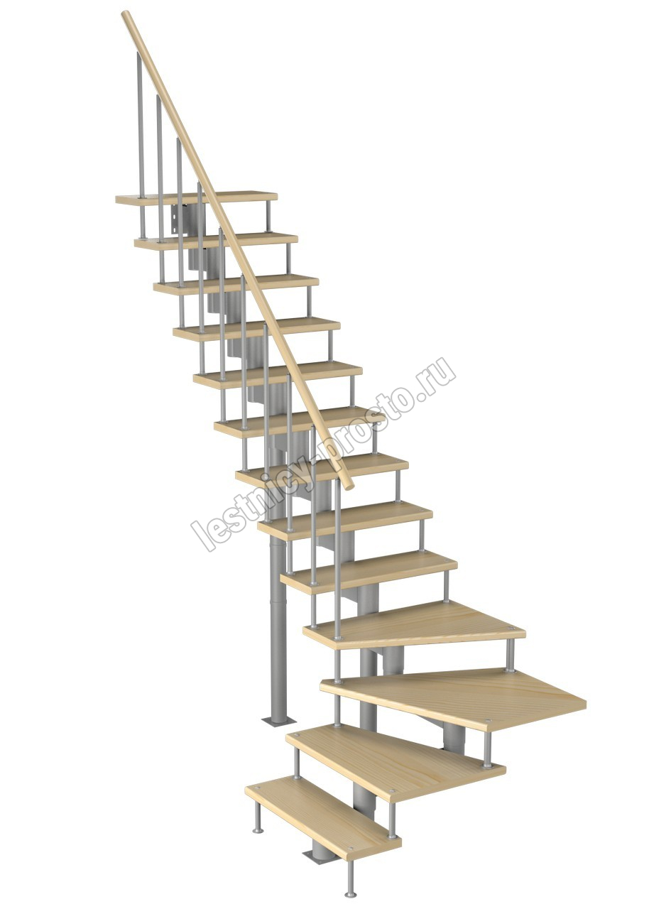 Модульная лестница Фаворит 180 2340-2470, Серый, Сосна, Нержавеющая сталь