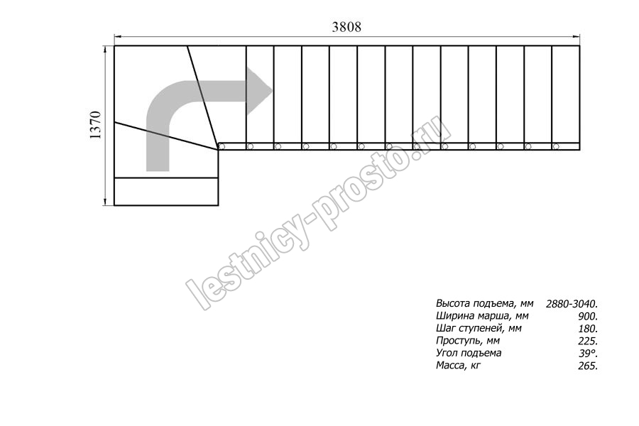 Модульная лестница Фаворит 180 2880-3040, Черный, Сосна, Нержавеющая сталь