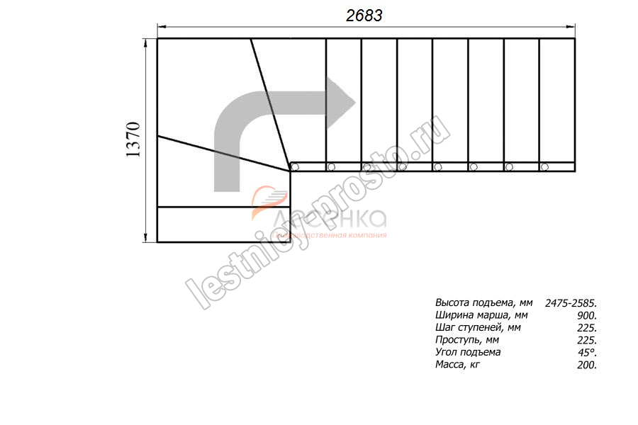 Модульная лестница Фаворит 225 2475-2585, Серый, Бук, Крашеная