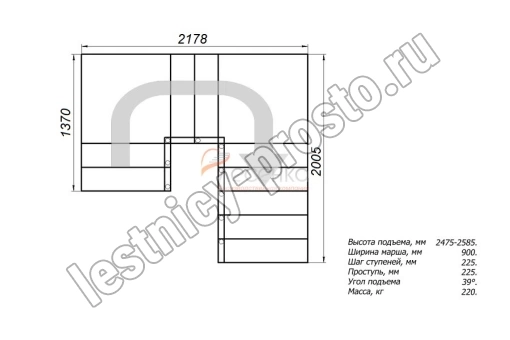 Высота лестницы 2475 - 2585 мм
