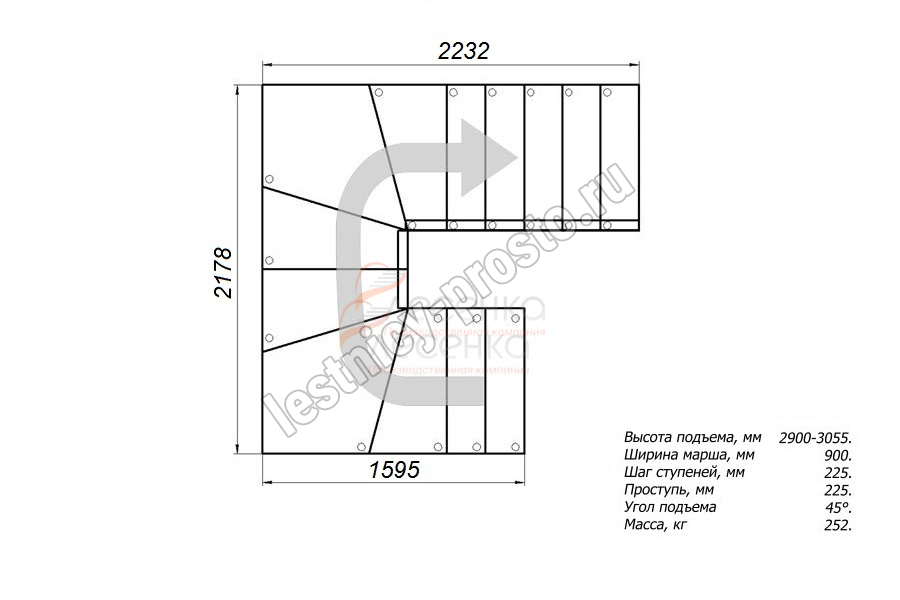 Модульная лестница Спринт 225 2925-3055, Серый, Сосна, Крашеная
