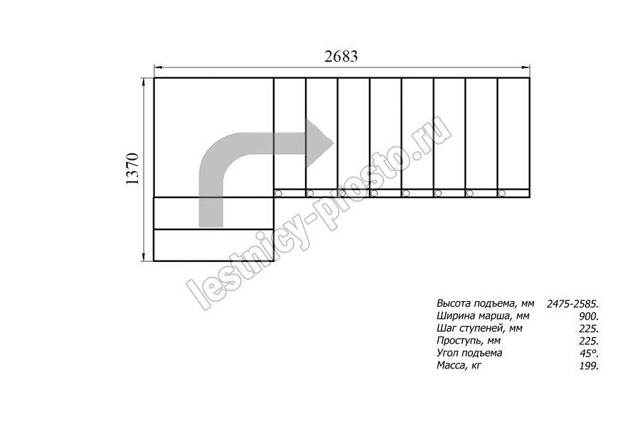 Модульная лестница Статус 225 2475-2585, Белый, Бук, Нержавеющая сталь