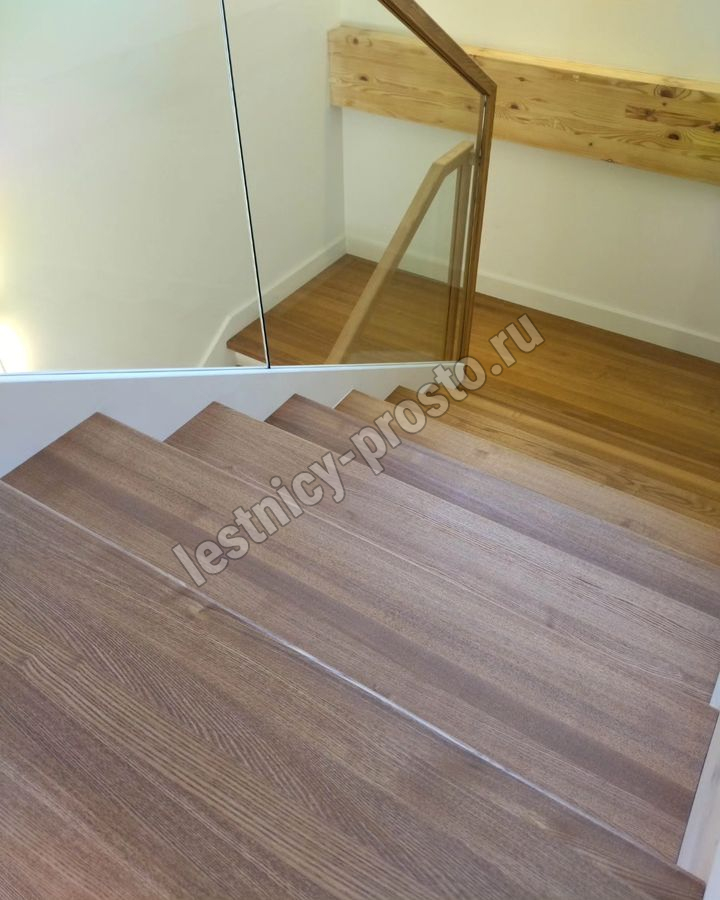 Ступени и поручень выполнены из цельноламельного срощенного дуба категории АВ.