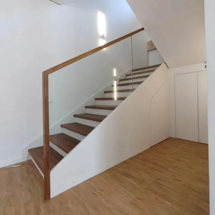 Ограждение - ударопрочное стекло и дуб.