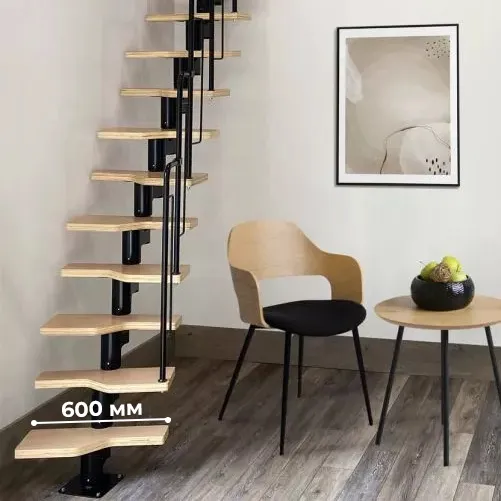 Новинка 2021 года !!! Не имеет аналогов в России по своему надежному конструктиву среди винтовых лестниц. Используемый материал - древесина шлифованная , не окрашенная и металл покрытый порошковой краской. Поручень - пластиковый, уже изогнутый. Цвет поручня в ассортименте.