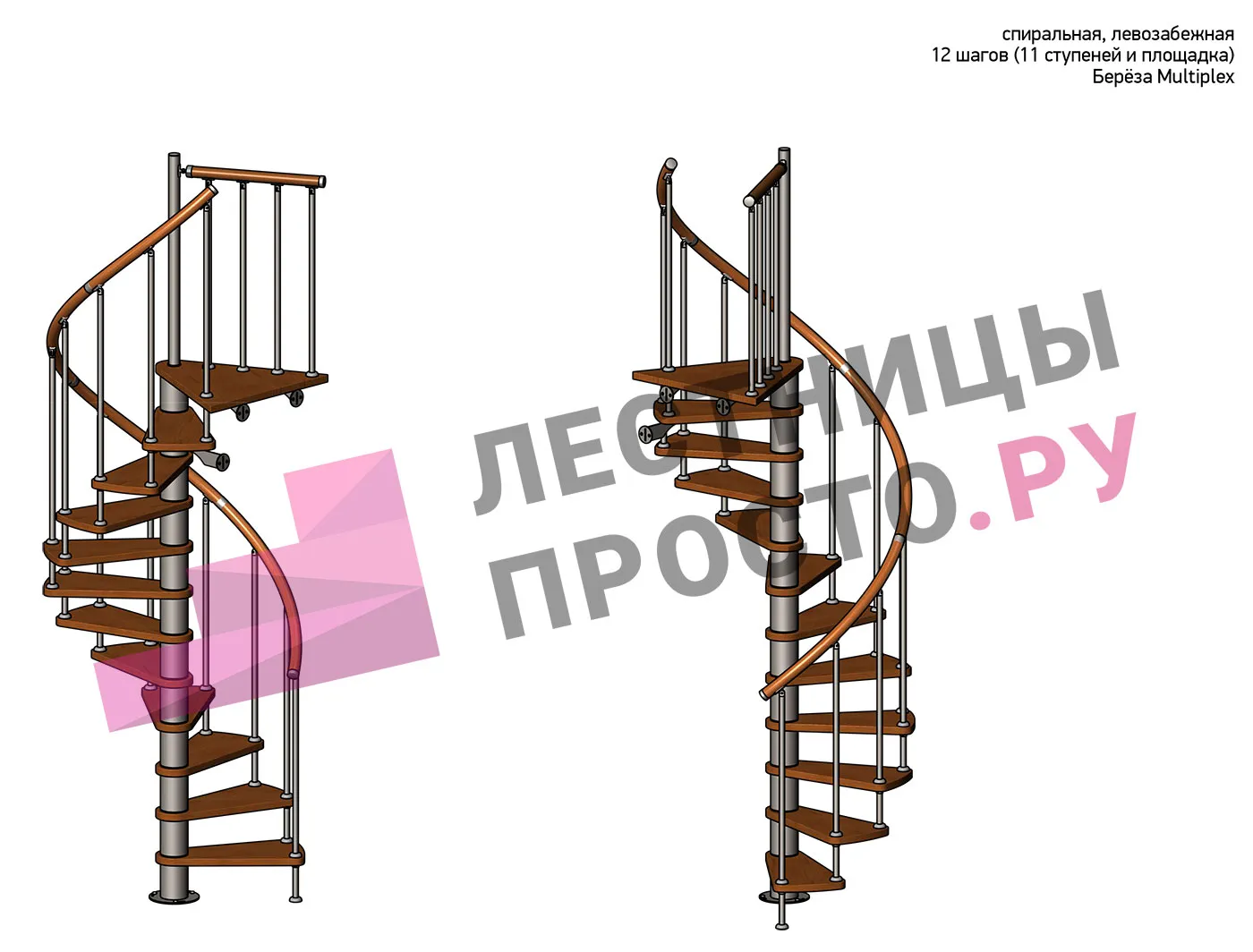 Винтовая лестница Prosto Spiral Black D120см, h254.5-289.8 см