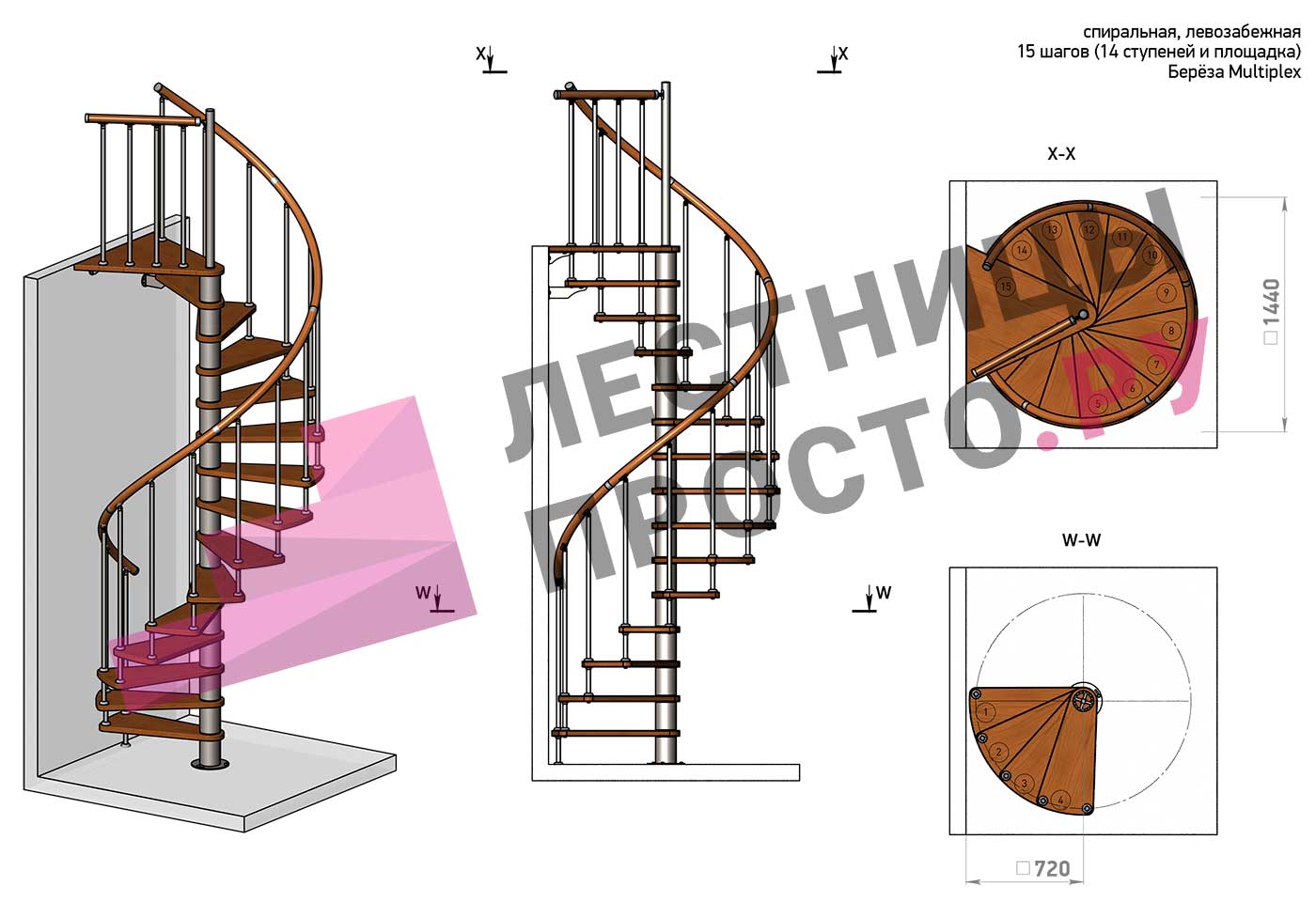 Решение об ориентации поворота лестницы принимается при сборке (комплект собирается и в правозабежную, и в левозабежную лестницу)