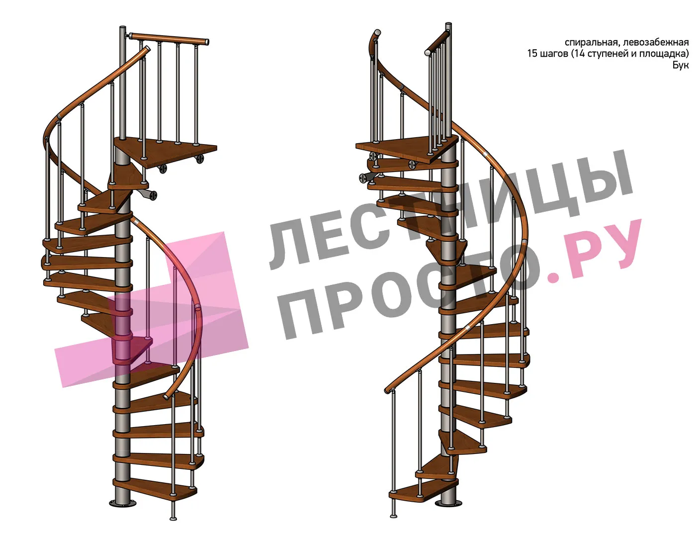 Винтовая лестница Prosto Spiral Black D140см, h325.7-369.8 см, бук