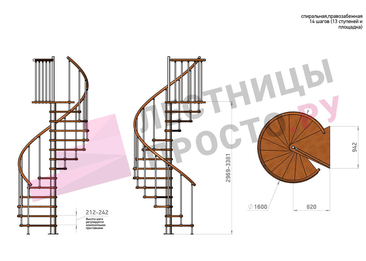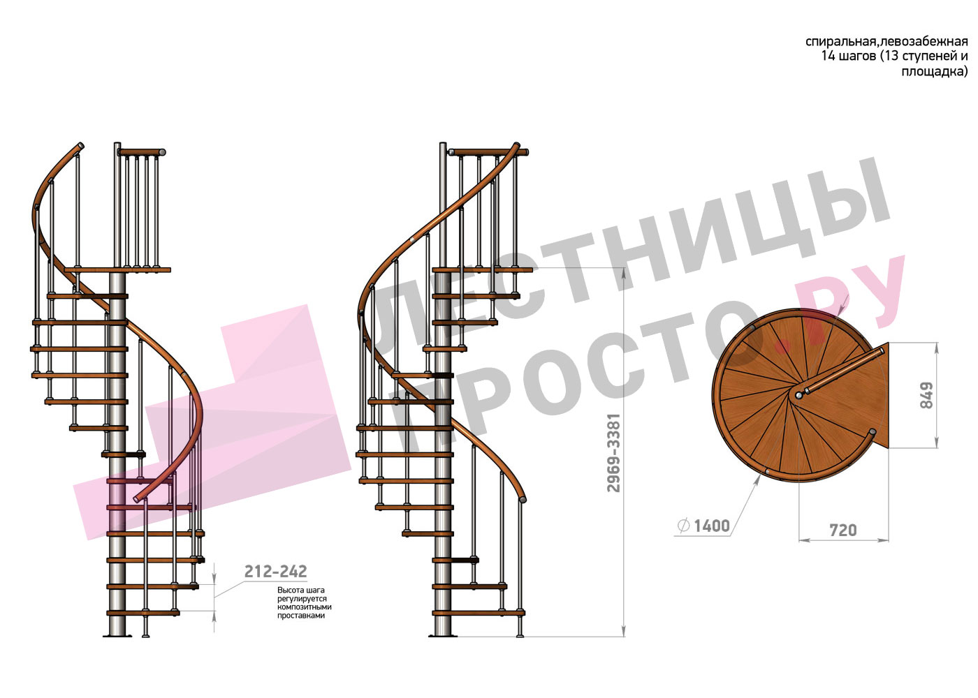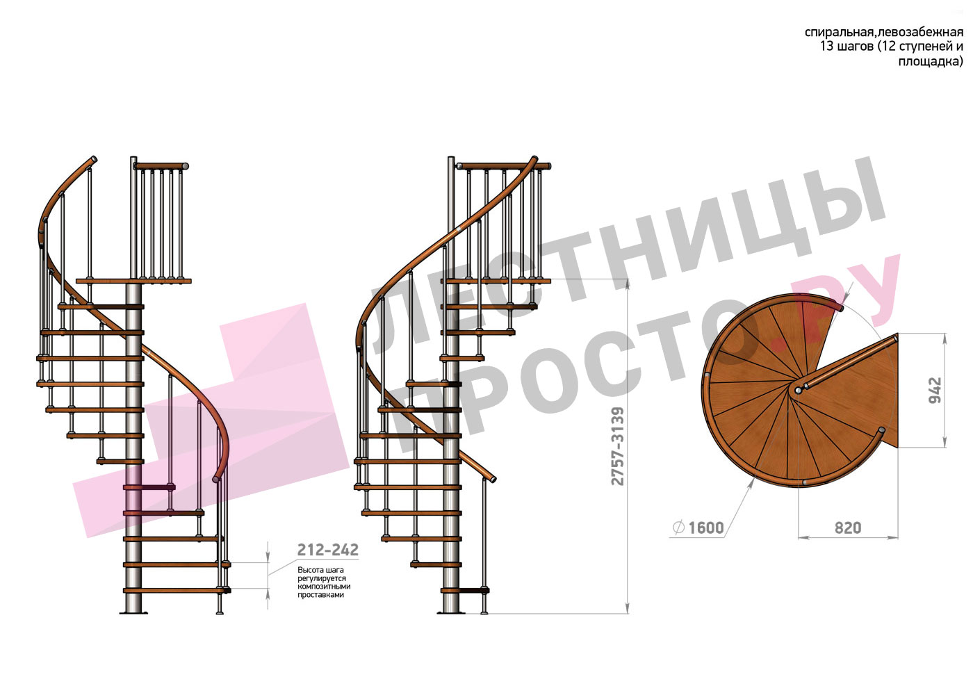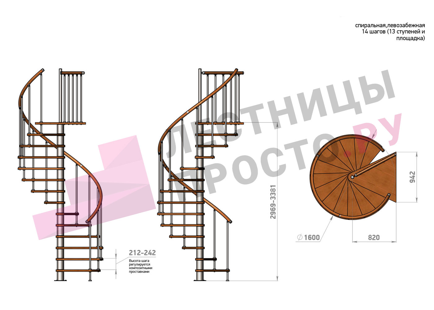 Винтовая лестница Prosto Spiral Black D140см, h275.7-313.9 см |