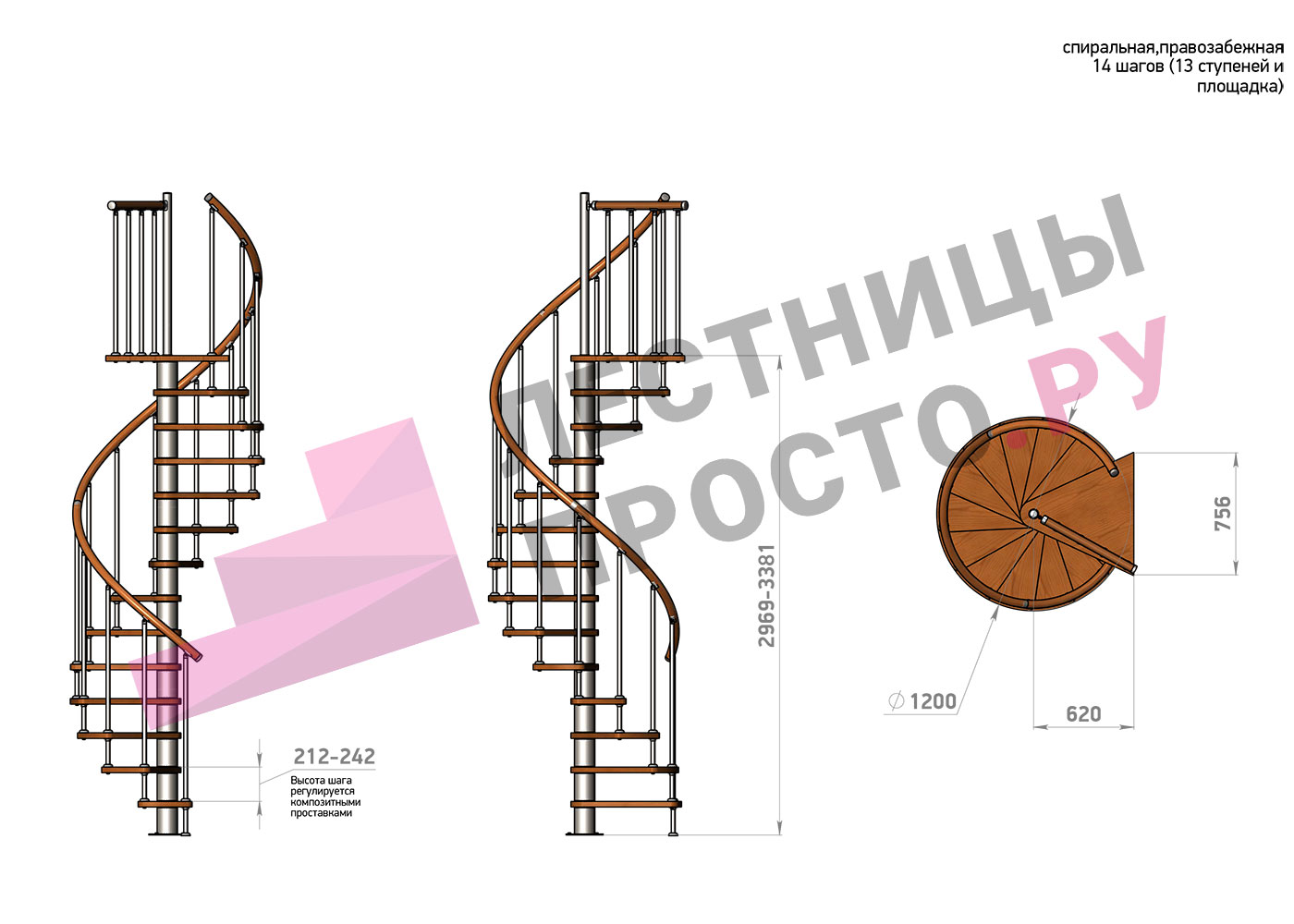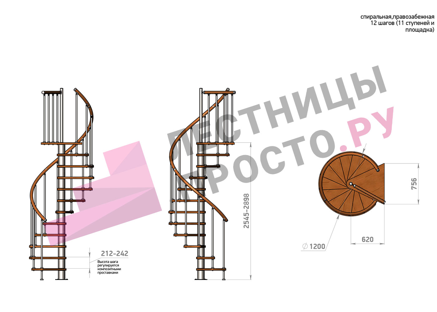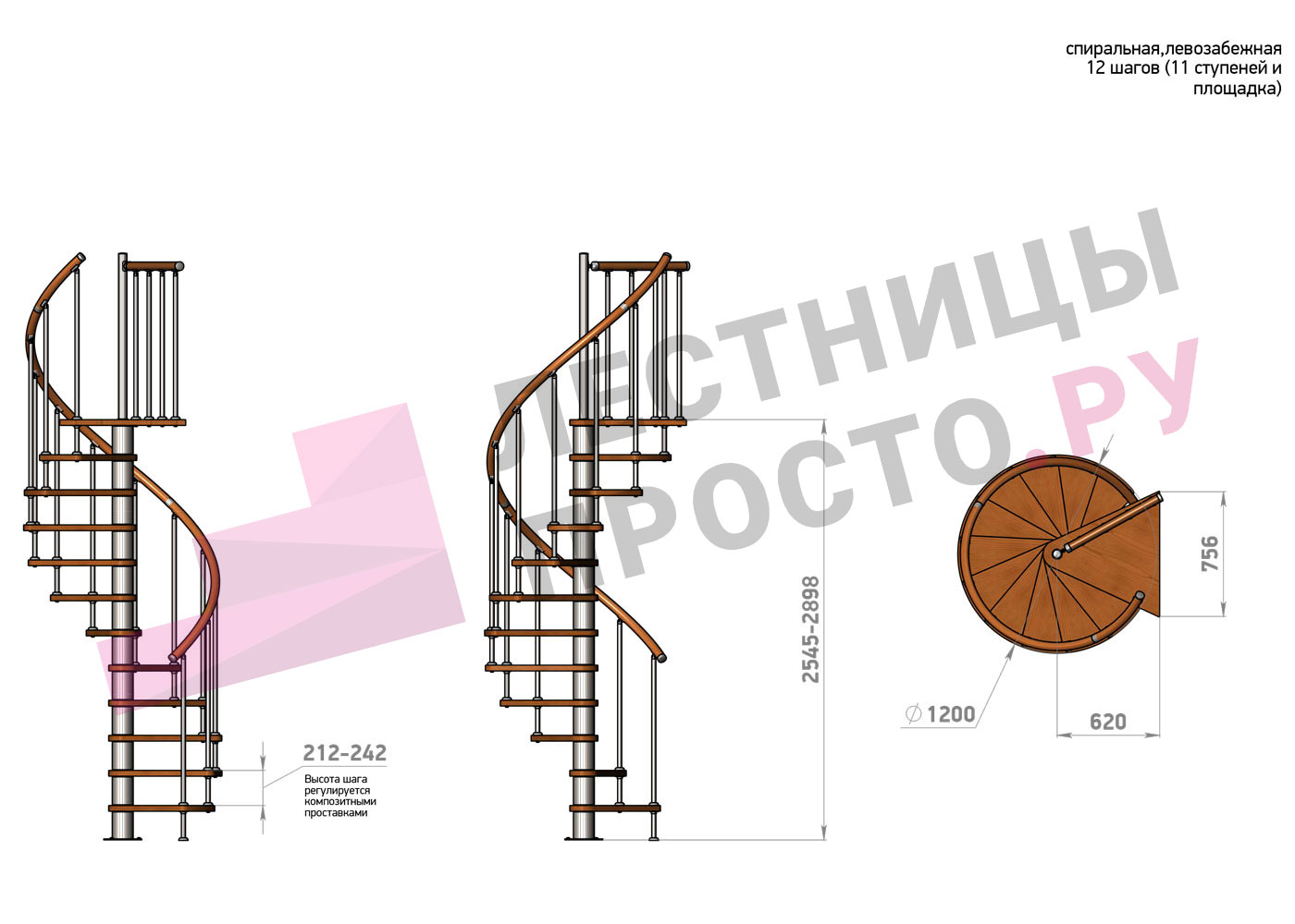 Винтовая лестница Prosto Spiral Black D120см, h275.7-313.9 см |