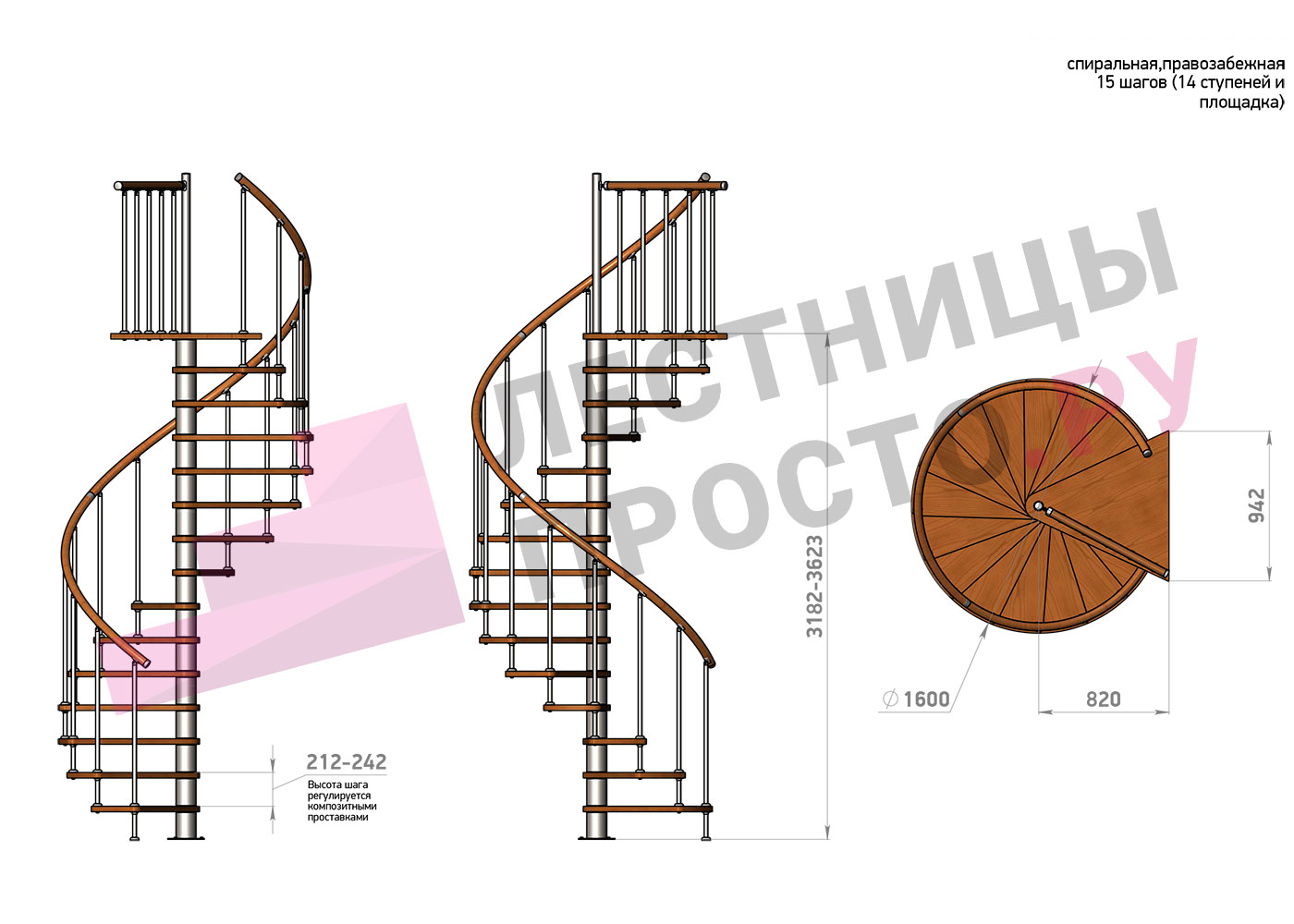 Винтовая лестница Prosto Spiral Black D160см, h318.2-362.3 см |