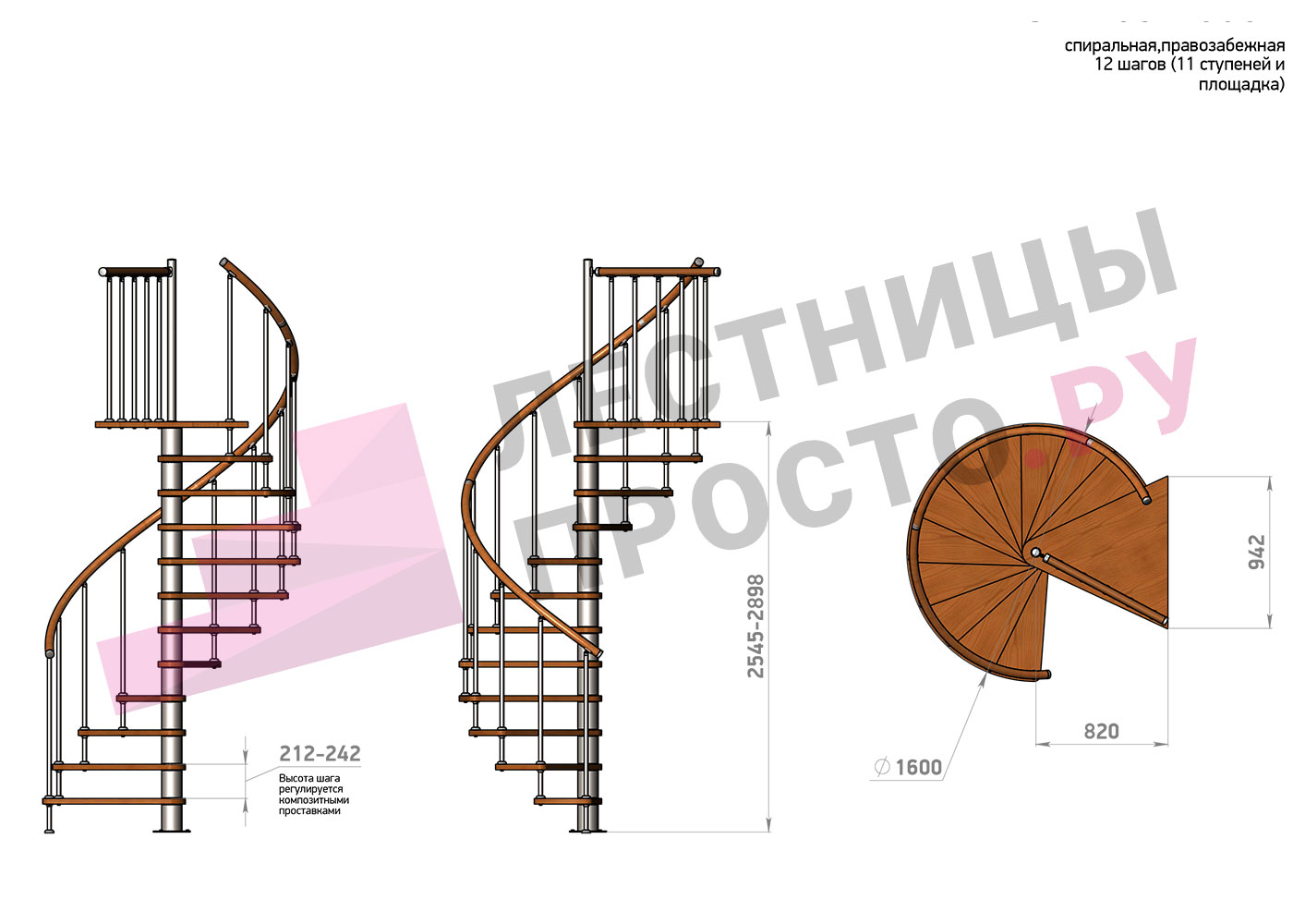 Винтовая лестница Prosto Spiral Black D160см, h275.7-313.9 см |