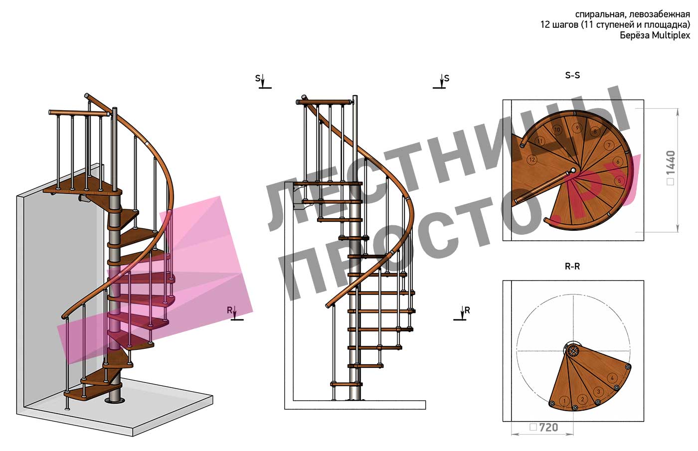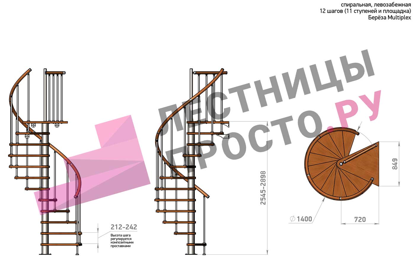 Винтовая лестница Prosto Spiral White D140см, h254.5-289.8 см