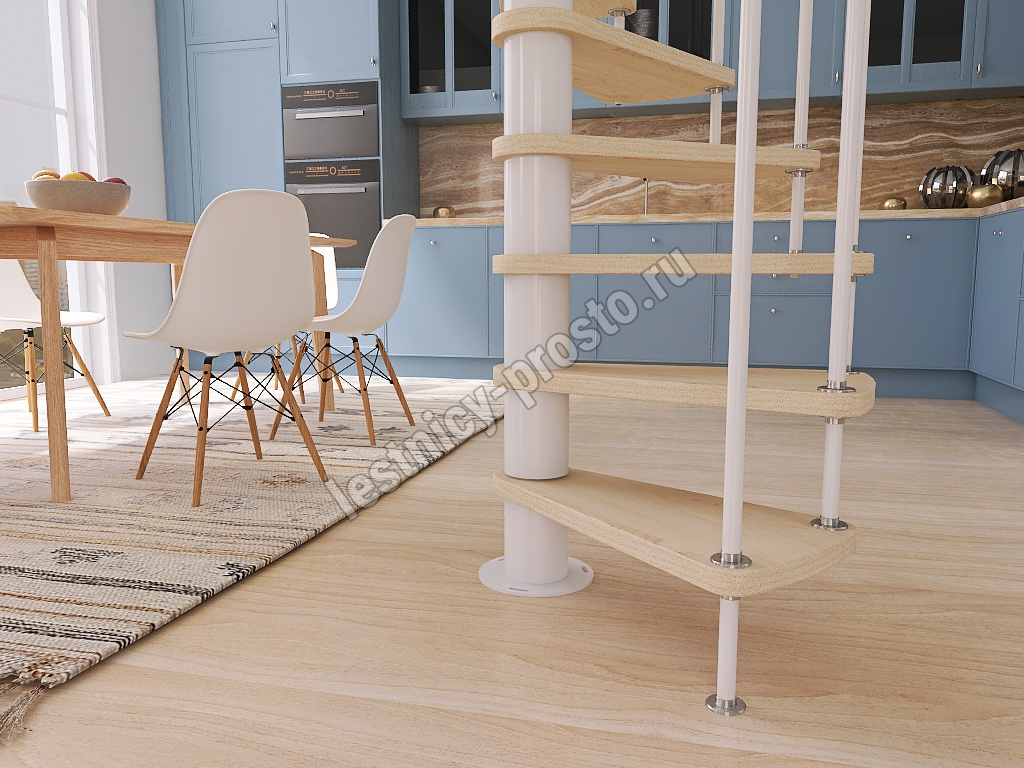 Винтовая лестница Prosto Spiral White D140см, h303.9-348,1 см, бук