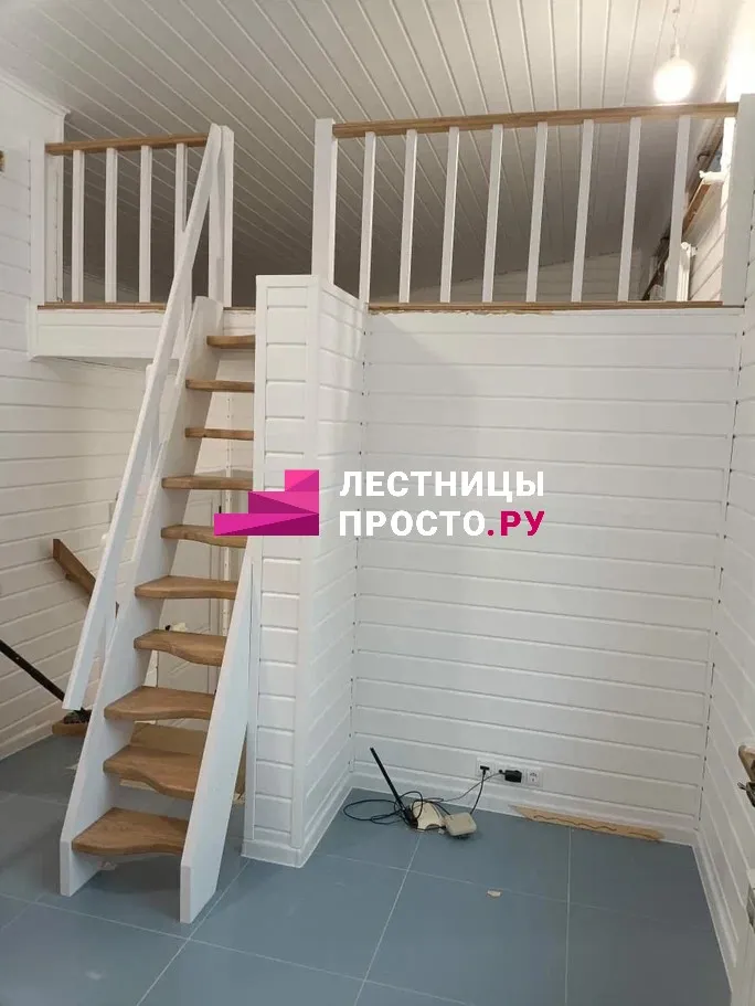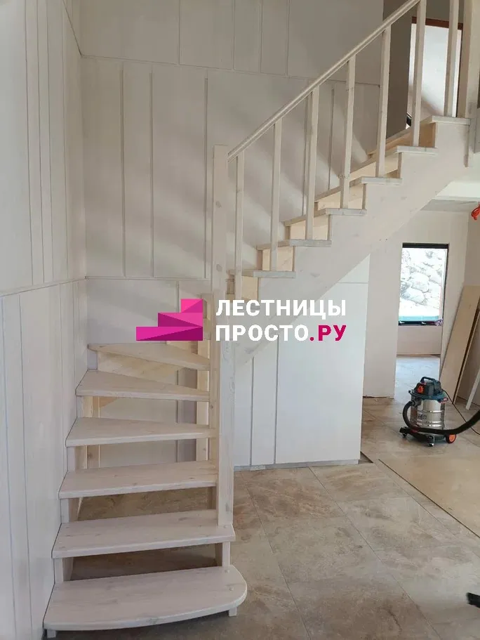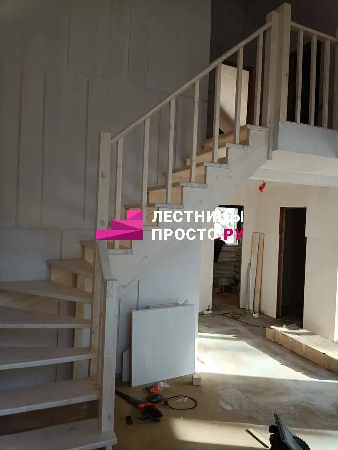 Г-образная лестница из сосны для частного дома ЛС-07/4