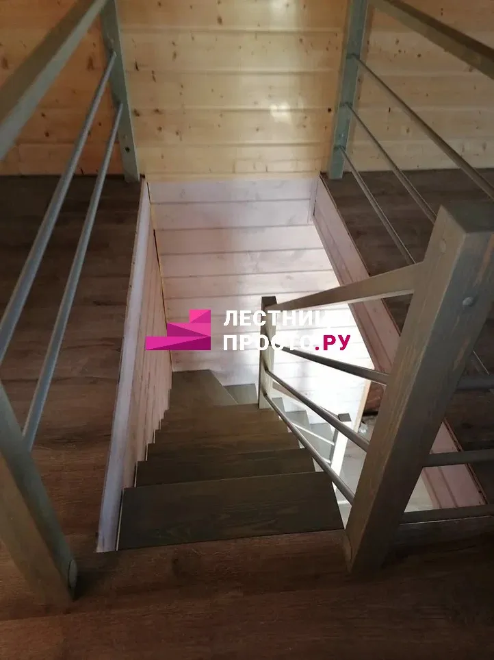 Лестница на второй этаж из лиственницы по индивидуальному проекту LP-000468