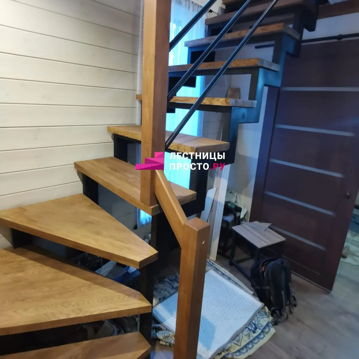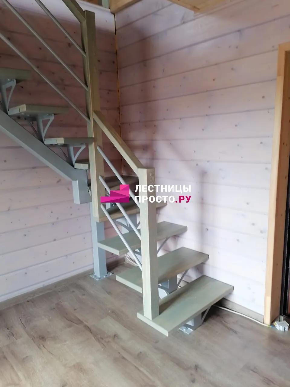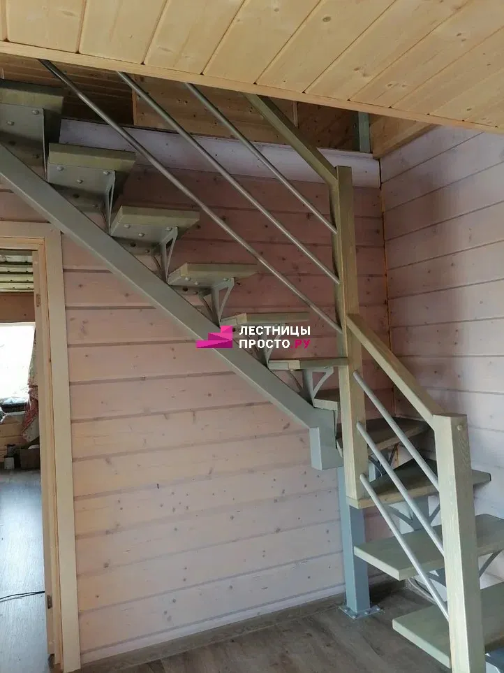 Металлическая лестница с сосновыми ступенями LP-3264