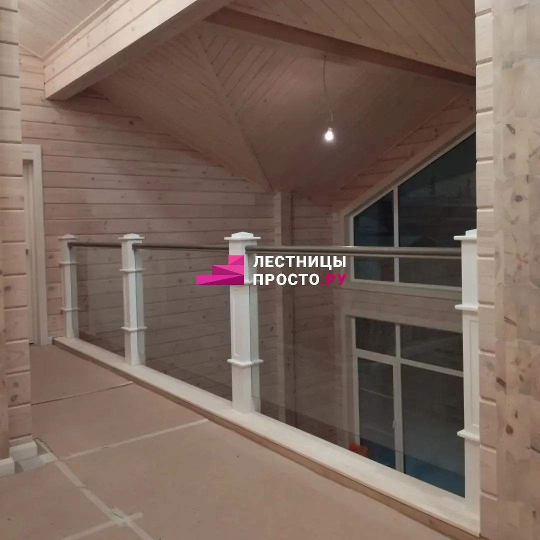 Лестница из сосны в частном доме с дополнительной балюстрадой