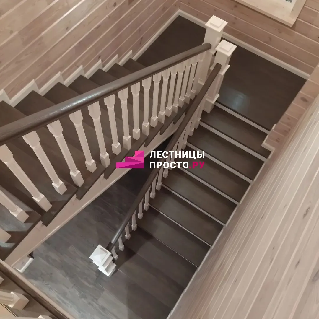 Лестница LP из сосны на второй этаж с поворотом на 180 градусов